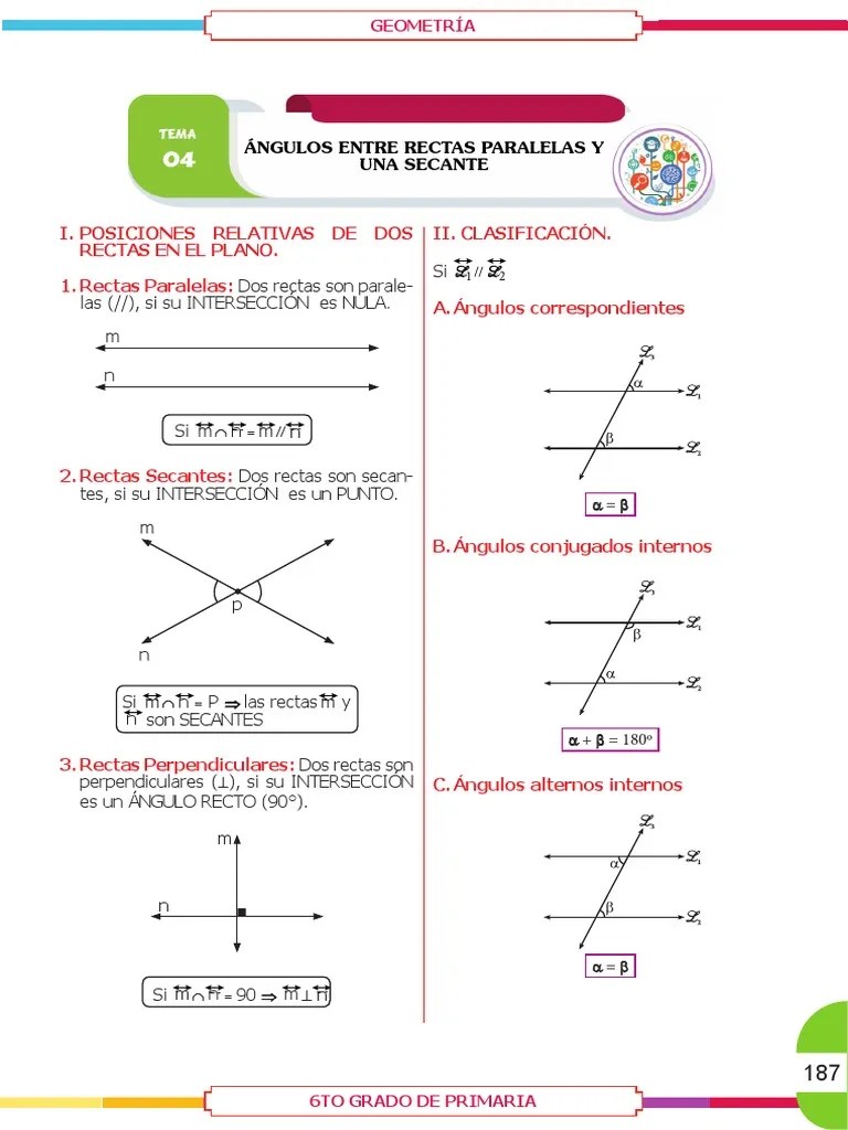 Identificación de rectas paralelas, secantes y perpendiculares en el plano, así como de ángulos rectos, agudos y obtusos.